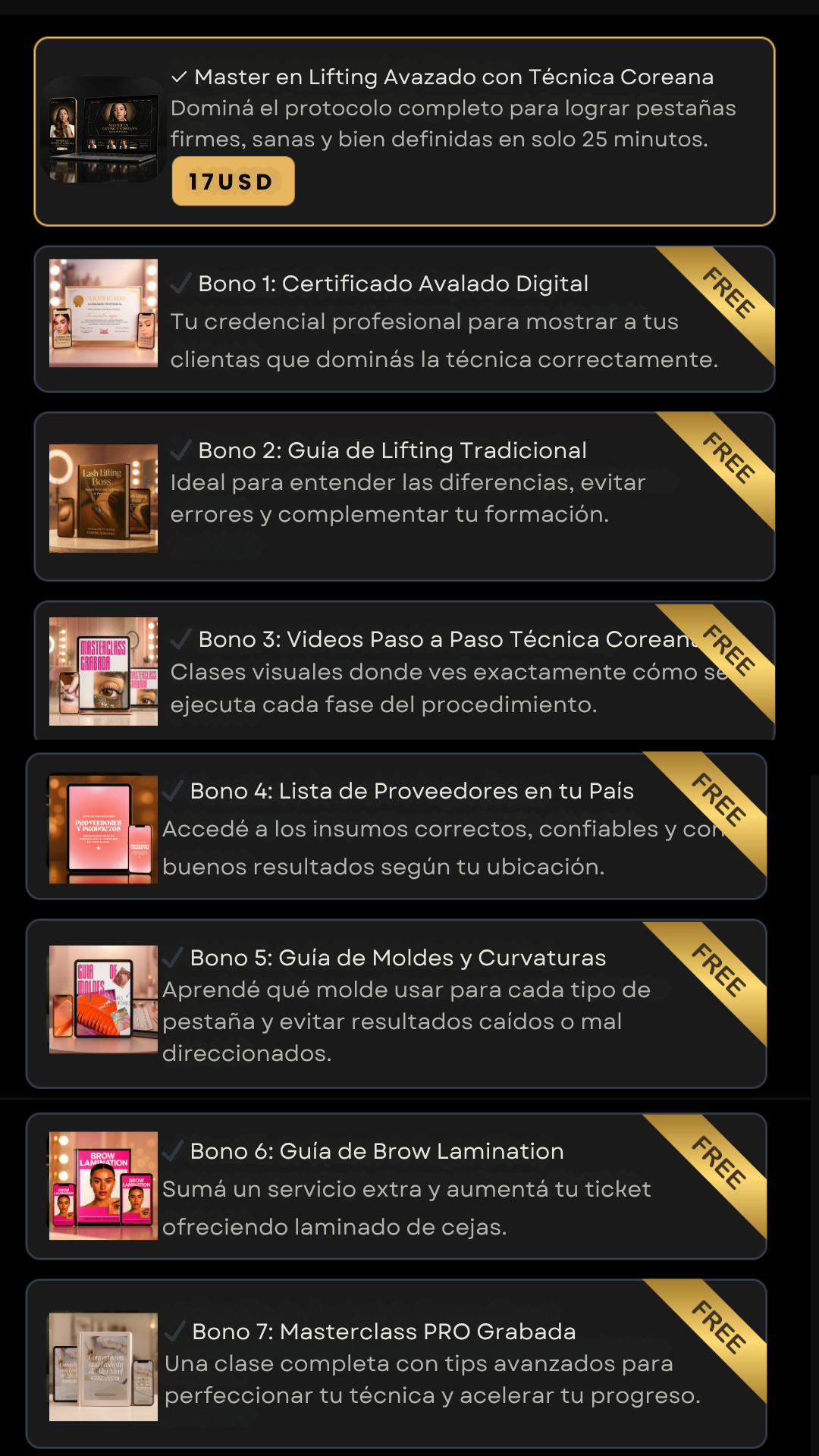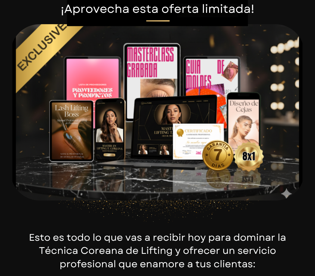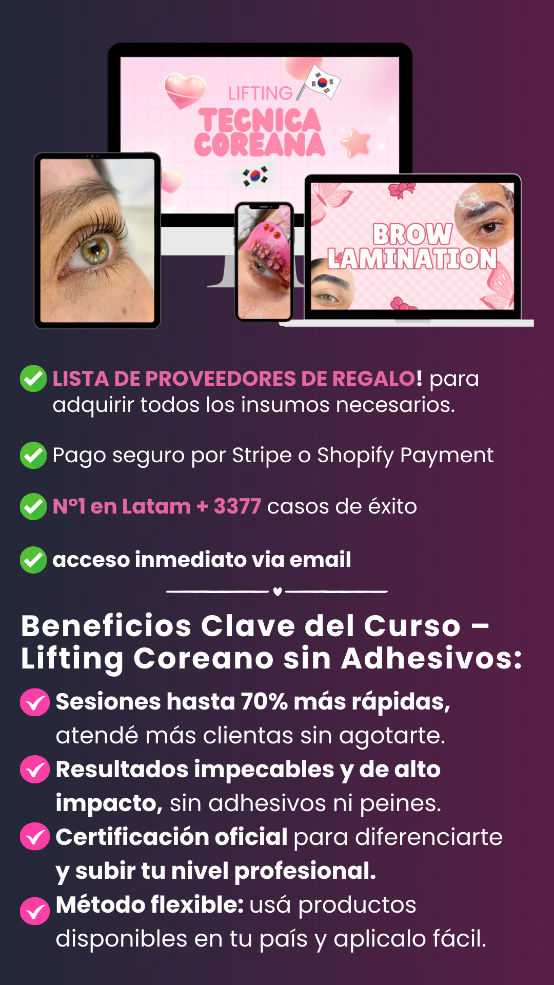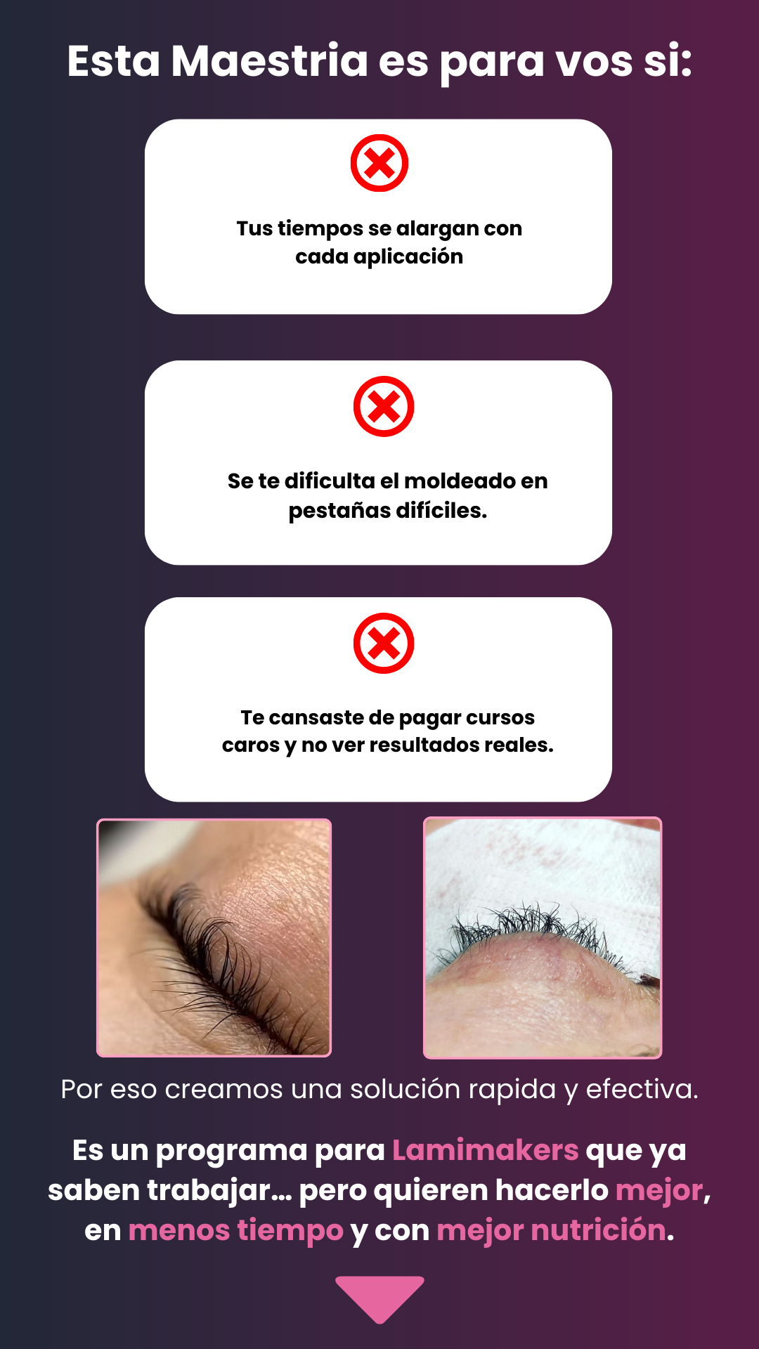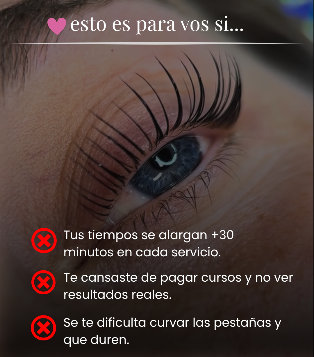 - Protocolos avanzados según casos reales (pestañas gruesas, finas, dañadas, ojos sensibles)